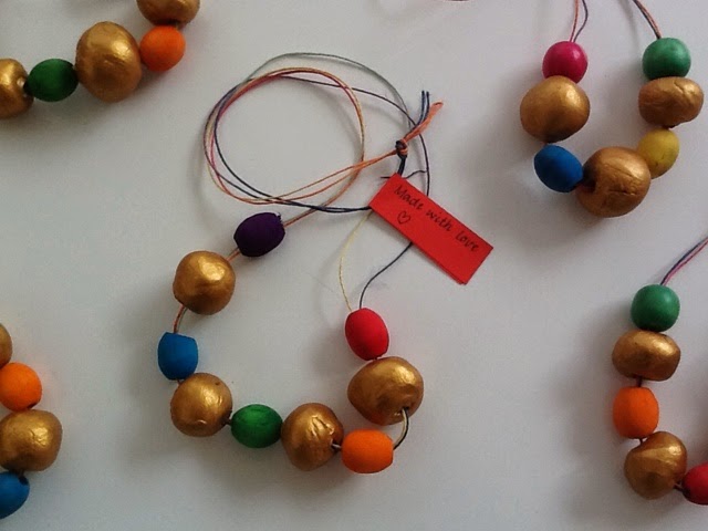 Once they were dry, I laminated them and threaded them on some rope so they could be hung outside.